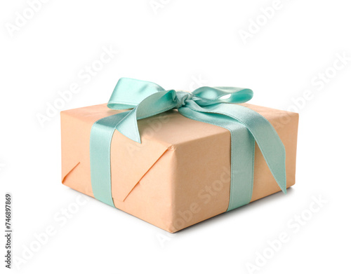 © Pixel-Shot, Obraz premium Gift box with blue bow on white background. International Women's Day