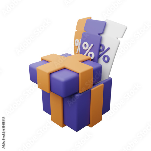 © Pentol, Obraz premium Gift box with discount tag 3d illustration