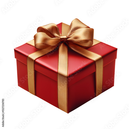 Obraz premium Gift Box with gold Ribbon and Bow isolated on transparent white background,...