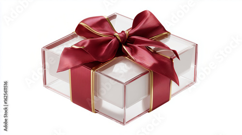 © Helen, Obraz premium gift box with red ribbon and bow on white background copy space