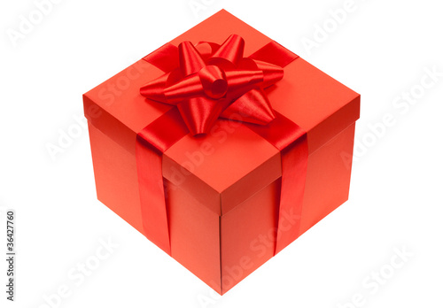 © mast3r, Fototapeta premium gift box with red ribbon bow isolated over white background