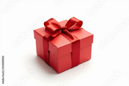 © ThomasLENNE, Obraz premium Gift box with red ribbon, isolated on the white background, clipping path included.