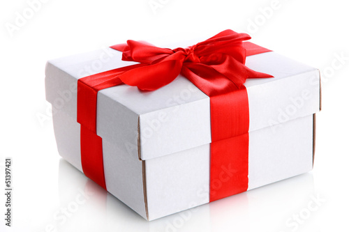 © Africa Studio, Fototapeta premium gift box with red ribbon, isolated on white