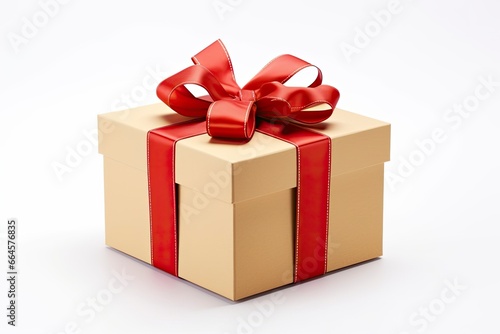 Fototapeta premium Gift box with red ribbon isolated on white background.