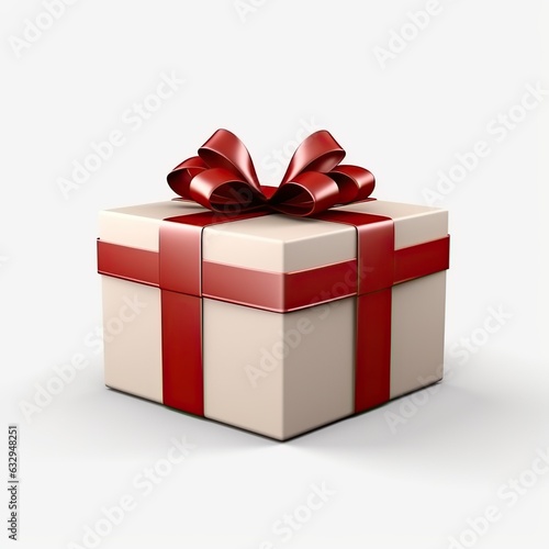 Fototapeta premium Gift box with red ribbon, white background
