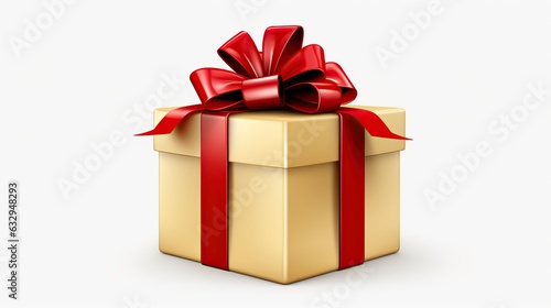 Fototapeta premium Gift box with red ribbon, white background