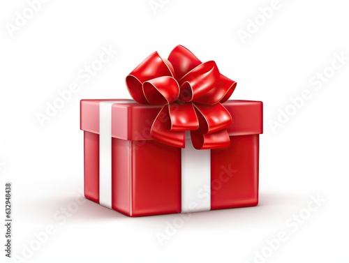 Obraz premium Gift box with red ribbon, white background
