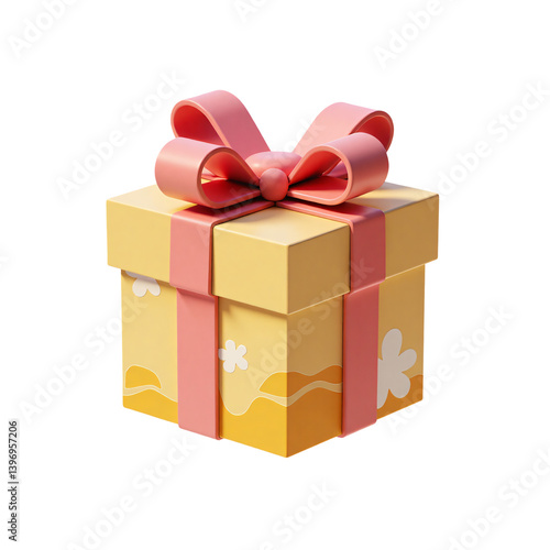 © Reytr, Fototapeta premium Gift Box with Ribbon Present Surprise 3D Render Icon Illustration Cute Cartoon Style