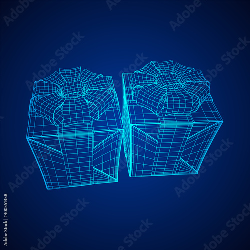 © newb1, Obraz premium Gift Box with ribbon wireframe