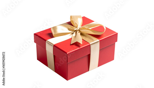 © Asif, Fototapeta premium Gift box wrapped in red paper with golden bow, isolated on transparent background, Christmas present