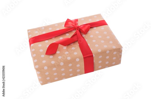 © Tanya Rozhnovskaya, Obraz premium Gift box. Wrapping paper with polka dots.