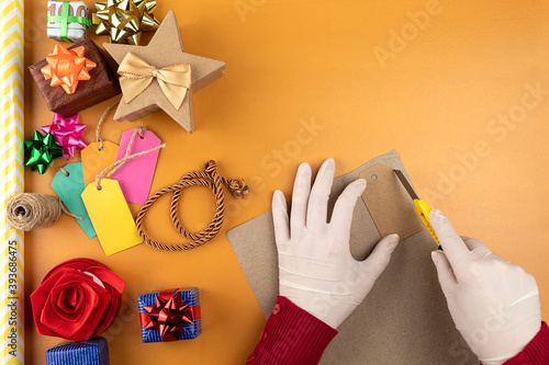 Fototapeta premium Gift boxes and wrapping paper on the table