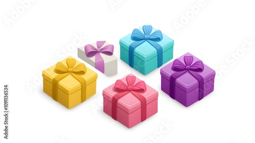 © Ivana, Fototapeta premium Gift boxes in different colors, a simple vector illustration on a white background