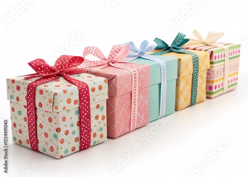 Obraz premium gift boxes isolated on white, Wrapped gift boxes arranged in banner format