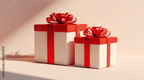 Obraz premium Gift boxes with red ribbons and bows isolated on a light background