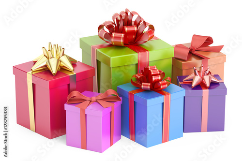 Fototapeta premium Gift multicolored boxes, 3D rendering