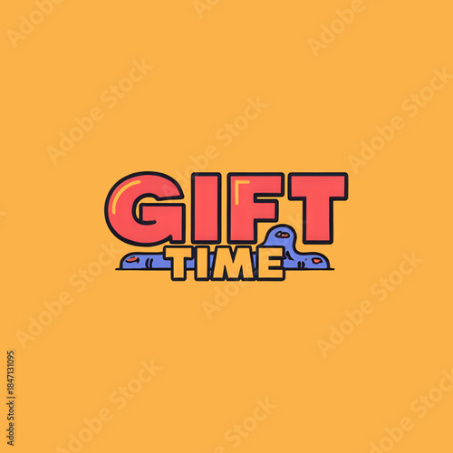 Obraz premium Gift Time Lettering Graphic on Warm Orange Background