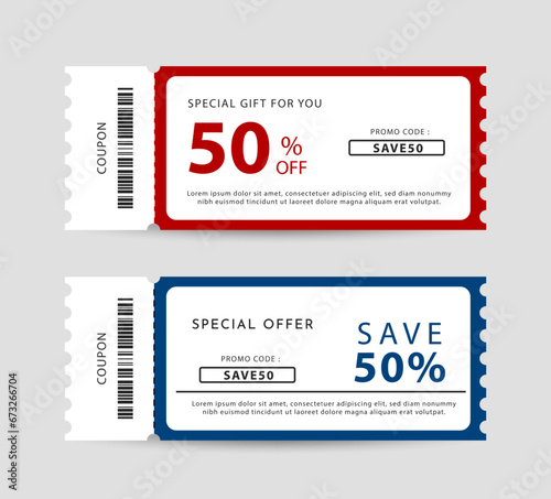 © Ardkyuu, Obraz premium Gift voucher card template design. Sales promotion discount coupon. Vector illustration