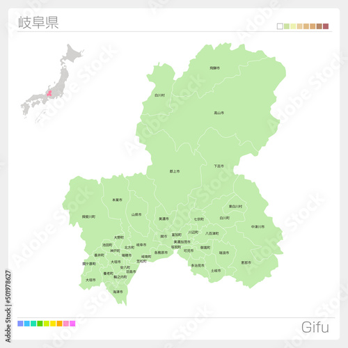 Fototapeta premium 岐阜県の地図・Gifu Map