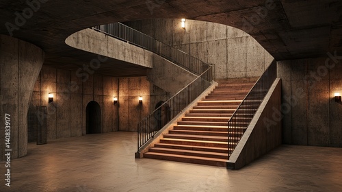 Fototapeta premium Gigapixel standard stunning staircase design in modern building interiors...