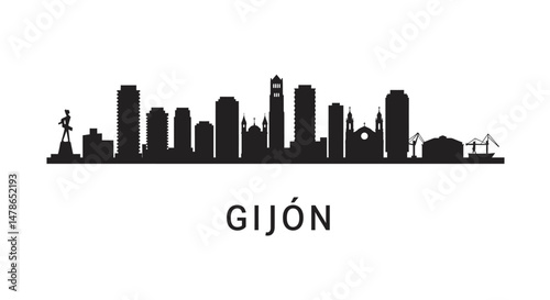 © godsfavoritearts, Fototapeta premium Gijon Skyline Spain cityscape Silhouette.