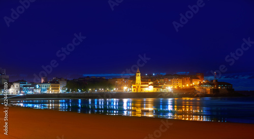 Fototapeta premium Gijon skyline sunset in San Lorenzo beach Asturias