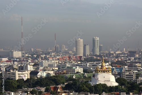 Obraz premium Gilded Stupa on Golden Mount, Wat Saket temple, northern skyline, panoramic...