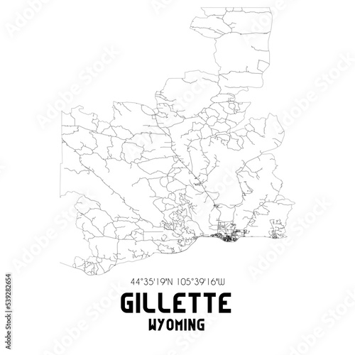 Obraz premium Gillette Wyoming. US street map with black and white lines.