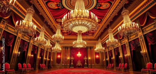 © Sanook, Obraz premium Gilt-edged ballroom, opulent chandeliers, rich fabrics, crystal, pattern