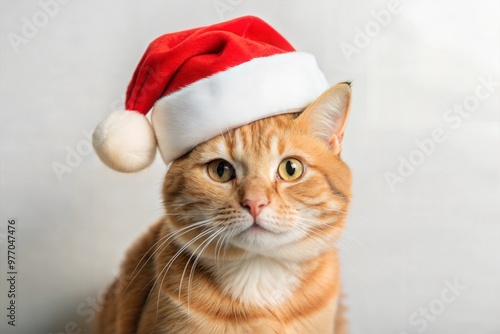 Fototapeta premium ginger cat, Santa hat, Christmas cat, holiday theme, Ginger Cat Wearing Santa Hat for Christmas Theme