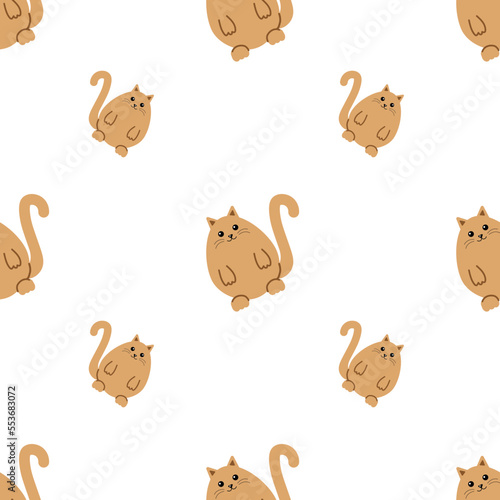 Obraz premium Ginger cat, seamless pattern, vector. Red cartoon cat on a white background.