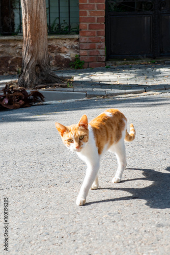 © Дарья Чернова, Fototapeta premium ginger cat walking along the road in Istanbul. High quality photo