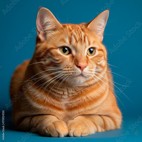 © GeraldoAndres, Obraz premium Ginger Cat with Blue Background