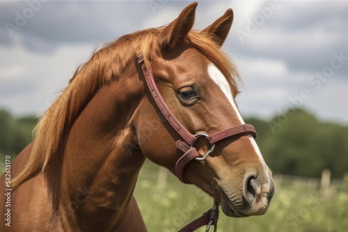 © AkuAku, Obraz premium Ginger colt on grass. Generative AI