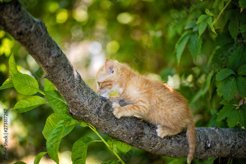Obraz premium Ginger kitten playing on a tree