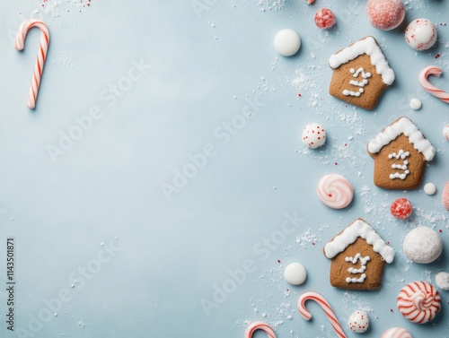 © Ryzhkov, Fototapeta premium Gingerbread House Day Festive Pattern for Christmas, New Years, and Valentines Gift Wrap and Digital Use