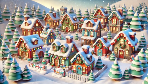 Naklejka premium Gingerbread house decorated with candy and frosting in a snowy winter wonderland.