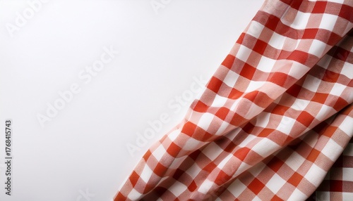 © Jessica, Fototapeta premium gingham fabric layout on clean white background with space for text