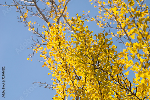 Fototapeta premium Ginkgo biloba in autumn, yellow ginkgo leaves