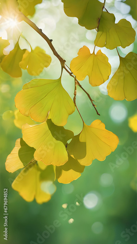 Fototapeta premium Ginkgo biloba leaves leaves background