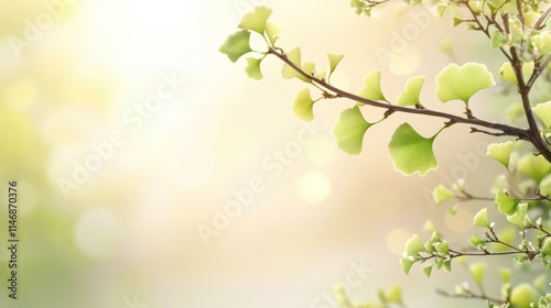 © Joyce, Fototapeta premium Ginkgo biloba plant leaf closeup view.