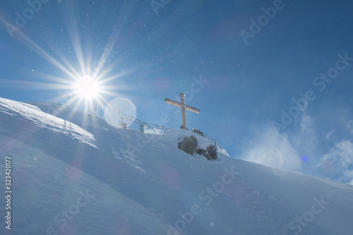 Obraz premium Gipfelkreuz an sonnigem Tag