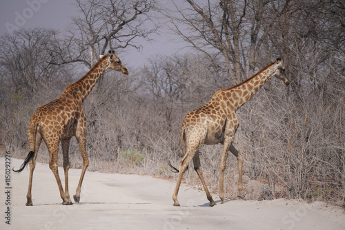 Obraz premium Girafes dans le réserve de Moremi, le long du delta de l'Okavango au Botswana