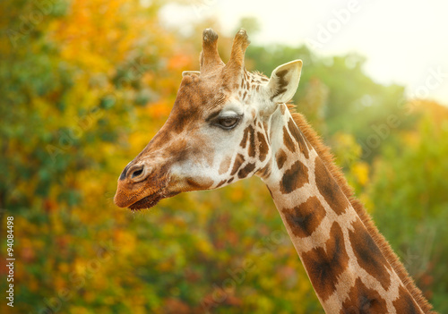 © Yasonya, Naklejka premium Giraffe animal in nature in green park