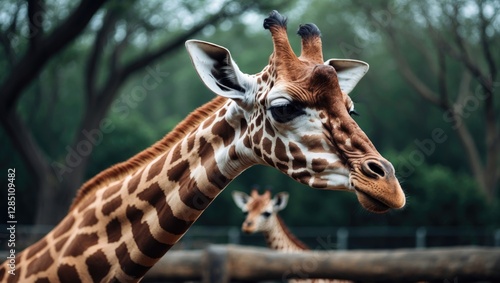 © TheWaterMeloonProjec, Obraz premium Giraffe at the zoo: A glimpse of wildlife.