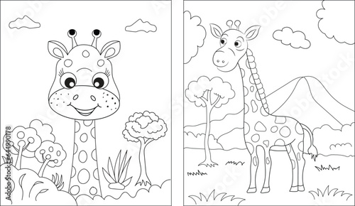 Obraz premium Giraffe cartoon characters isolated on white background. For kids coloring book.