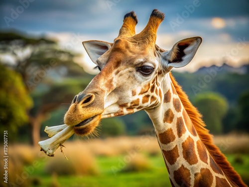 © Arnada, Obraz premium Giraffe Delight: Savoring a Tasty Bone in the African Savanna