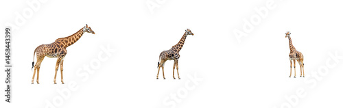 © Maestro, Naklejka premium Giraffe family isolated on black, standing ungulates, cut out transparent