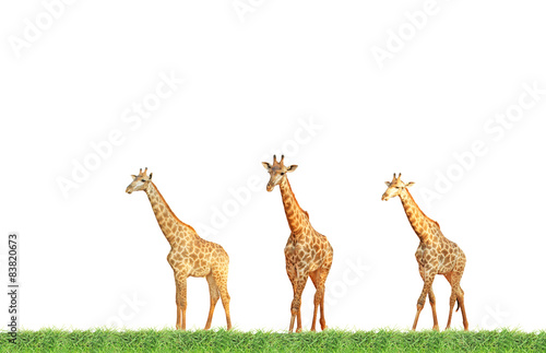 © Direk Takmatcha, Fototapeta premium Giraffe flock on green grass field