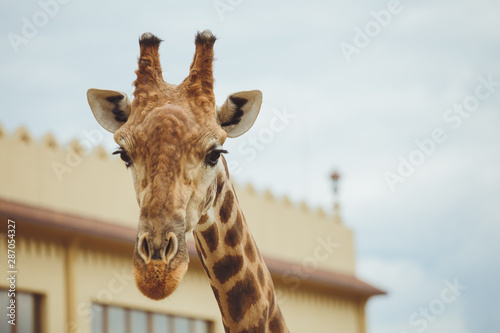 Obraz premium Giraffe. Giraffe head on sky background close-up
